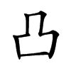 (1) 高出 [convex;raised]。高于周围的,如球形或圆形的外部或其一部分那样弯曲的——指从外面观看一个球面或曲线。如:凸兀(高出);凸凸(高出貌);凸凸囊囊(犹鼓鼓囊囊);凸凹(高低不平);凸杯(满杯);凸岸;凸镜;凸透镜