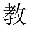 (1) (会意。从攴( pū),从孝,孝亦声。“攴”,篆体象以手持杖或执鞭。在奴隶社会,奴隶主要靠鞭杖来施行他们的教育、教化。本义:教育,指导)